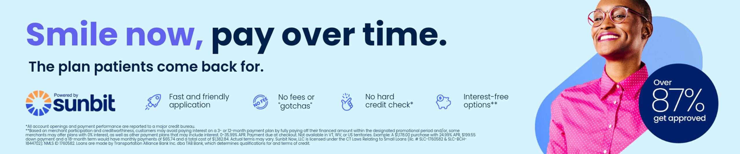 We work with some of the best financing options in the medical industry, making your smile goals more obtainable than ever before. Qualifying candidates can get exceptional financing rates, on even the most comprehensive treatment plans. Give our office a call or click the links below to apply today. Let's do dentistry, your way.